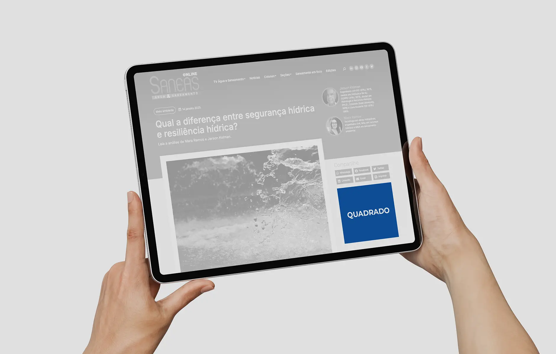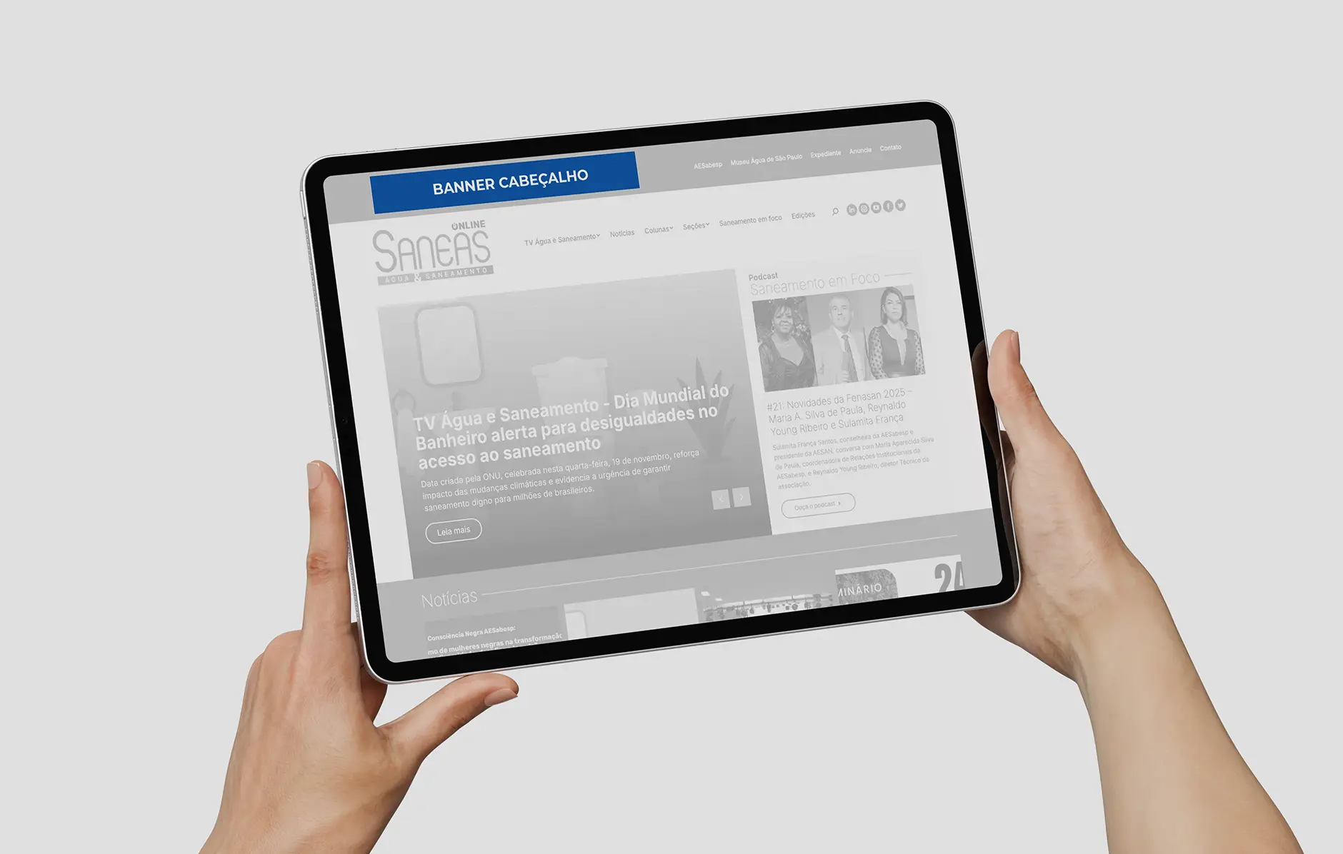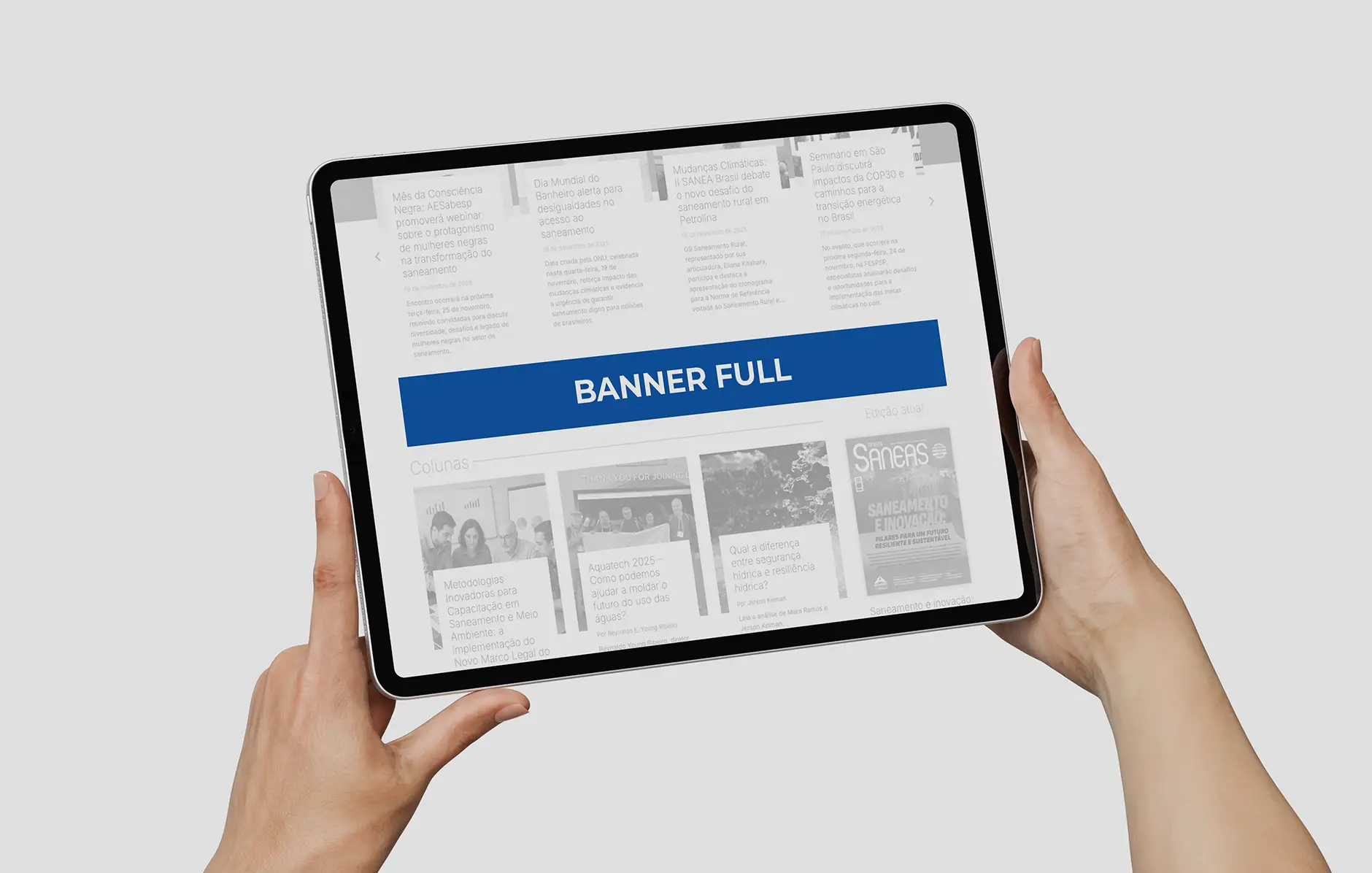 Além do portal, as marcas podem ampliar sua presença em formatos que realmente geram conexão, como banners e informes publicitários, projetos especiais, além da participação no podcast Saneamento em Foco e na TV Água e Saneamento – O canal da Sustentabilidade no YouTube. São canais que aproximam empresas de lideranças, especialistas e profissionais que acompanham, influenciam e decidem os rumos do saneamento no Brasil.